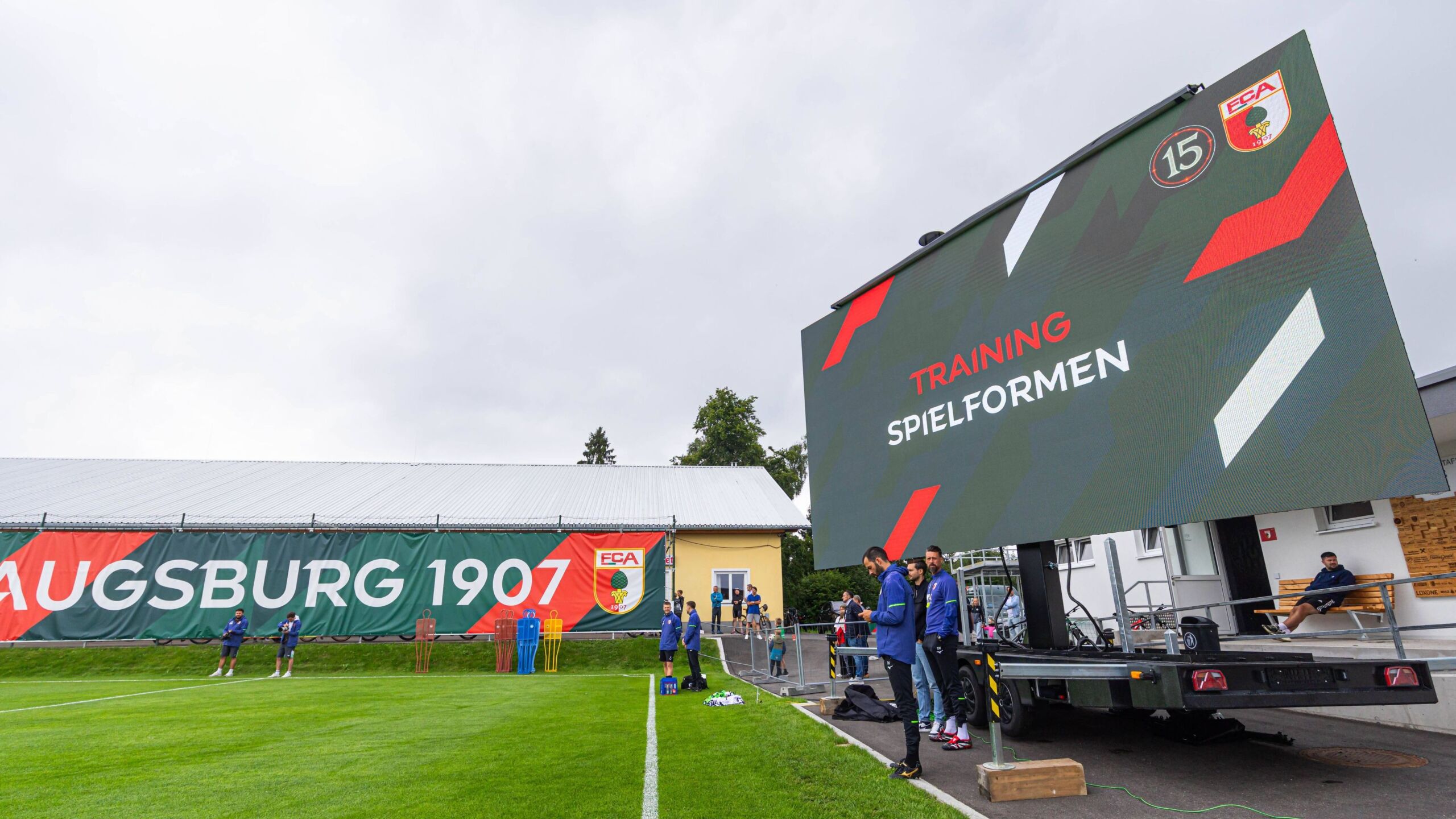 Anders fällt das Training trotzdem aus, allein schon deshalb, weil am Rand des Hauptplatzes stets eine Neuerung auf die Spieler wartet, an die sie sich mittlerweile schon gewöhnt haben. „Ich kannte das vorher nicht, sehe es aber sehr positiv“, sagt zum Beispiel Phillip Tietz über die extra aus Augsburg mitgebrachte XXL-Videowand.