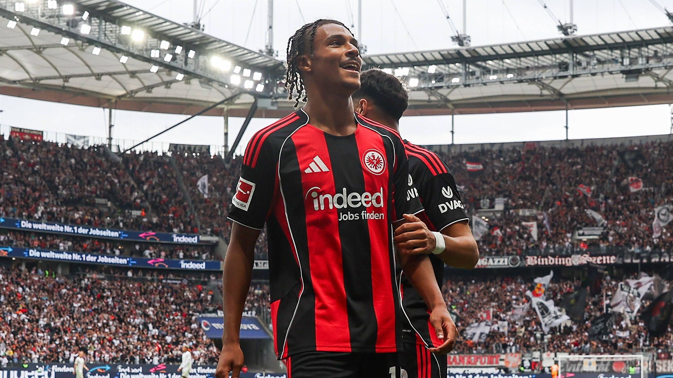 Auf das Zusammenspiel mit seinem Kumpel Hugo Ekitiké muss er dagegen verzichten. „Für Hugo ist es sehr schön, in Liverpool zu spielen. Das hat er sich verdient“, betont Bahoya, gibt sich aber nicht zerknirscht: „Jetzt habe ich mehr Platz und kann viel scoren.“ Auch die Konkurrenzsituation dürfte sich leistungsfördernd auswirken. Als er nach 67 Minuten für Ansgar Knauff den Platz verließ, traf dieser prompt zum 4:1. Auch Uzun ist im 4-2-3-1 auf dem linken Flügel ein Konkurrent, falls Trainer Dino Toppmöller auf der Zehn Mario Götze einsetzt. Mit dem Doppelpack hat Bahoya allerdings direkt am 1. Spieltag ein starkes Statement gesetzt – und sich für weitere Startelf-Einsätze empfohlen.