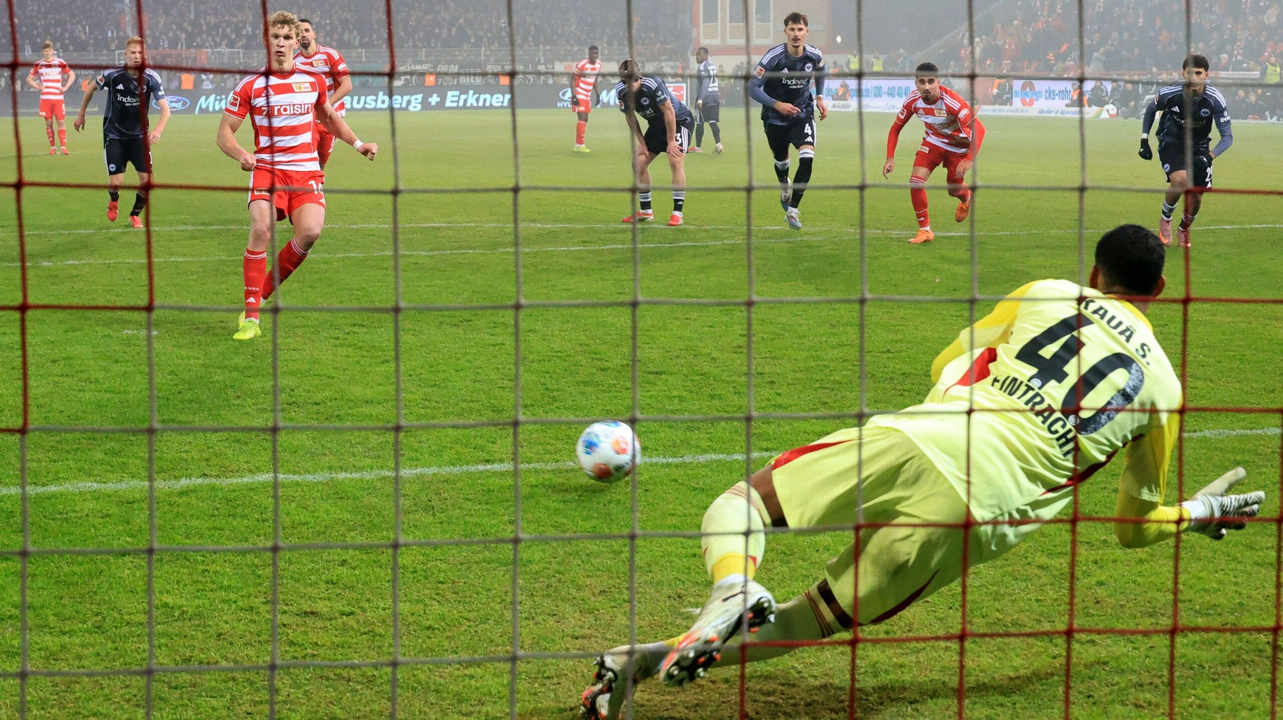 Doch der Österreicher in Diensten der Eisernen hatte Glück: Zwar ahnte Frankfurts Keeper Kaua Santos die Ecke und touchierte auch den Ball. Doch letztendlich rutschte dieser zum Glück für Querfeld unter dem Körper des Brasilianers zum 1:1-Endstand ins Netz (87.).