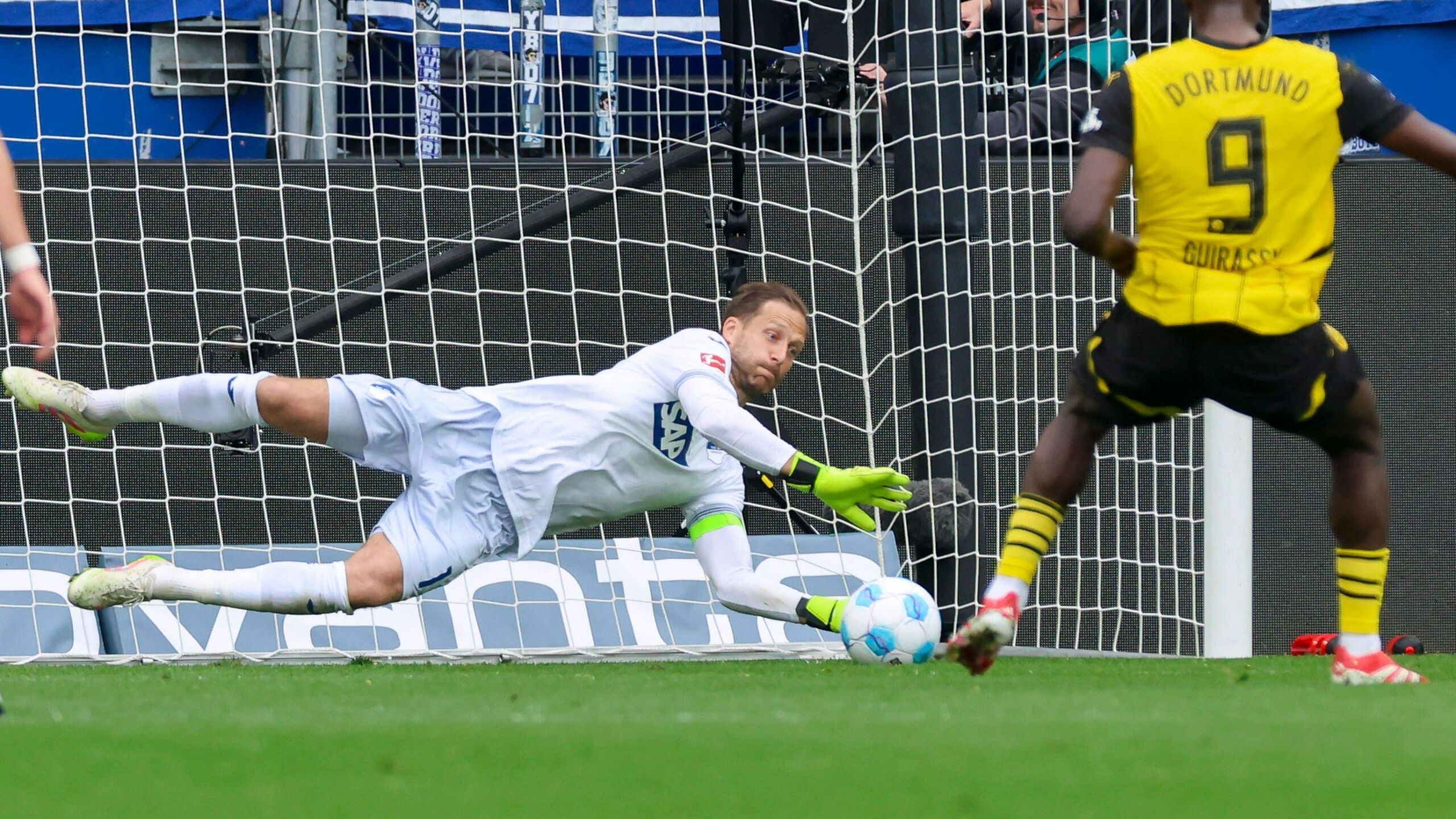 Ebenso schmerzhaft war für Baumann, der vorsichtshalber auch am Dienstag noch nicht wieder trainierte, dass mit diesem umstrittenen Treffer auch seine zuvor gezeigte Parade gegen Serhou Guirassy bedeutungslos wurde, zumindest was diese Partie und die Ausbeute der Kraichgauer betrifft. Denn nach einer guten halben Stunde hatte der unsichere Schiedsrichter Benjamin Brand, mit einer harten Entscheidung dem BVB einen Foulelfmeter zugestanden. Doch Borussias Stürmer scheiterte an Baumann, der nicht nur die Ecke ahnte, sondern den schwach geschossenen Ball sogar sicher festhielt.
