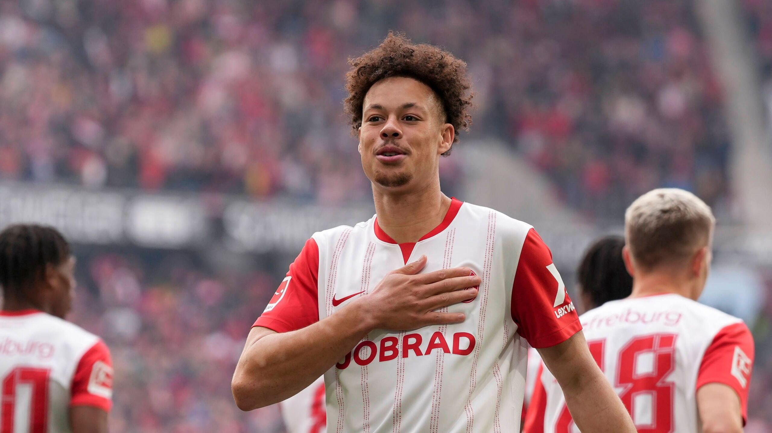Bisher war der gebürtige Berliner jeweils für Freiburgs Dauer-Top-Scorer Grifo eingewechselt worden, beim Europa-League-Spiel in Bologna (1:1) erstmals schon direkt nach der Pause. Auch da hat Johan Manzambi ihm einen Pass in den Lauf gespielt, ähnlich wie am Sonntag gegen die Eintracht. „Ich habe ihm gesagt: den nächsten, den er so spielt, mache ich rein. Ich bin sehr glücklich, dass es geklappt hat, und ich bin sehr happy über mein Startelf-Debüt“, sagte Scherhant. Er hatte nach nicht mal zwei Minuten zur Führung getroffen.