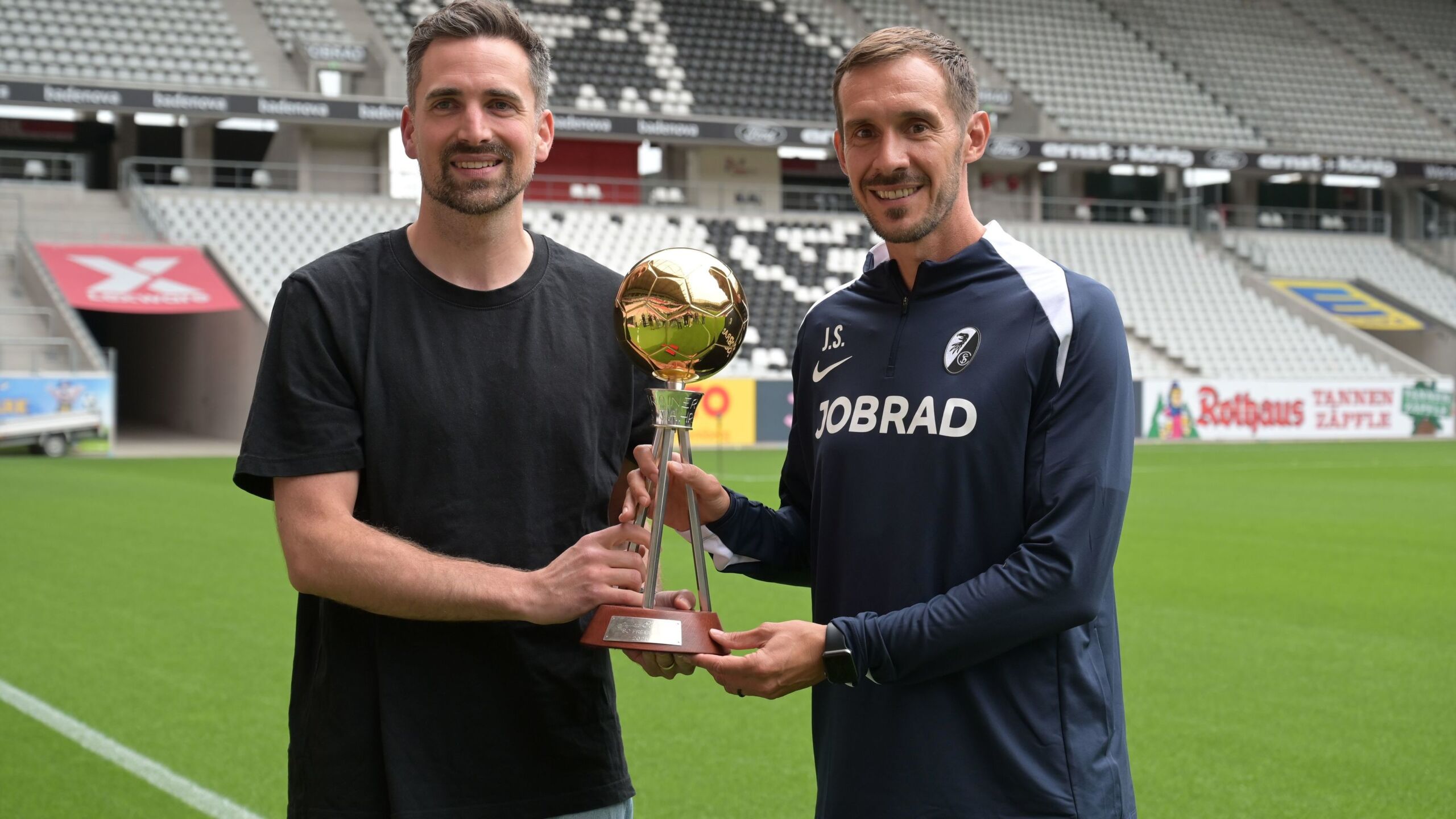 Am Donnerstag bekam Julian Schuster vom kicker die goldene Trophäe für die Wahl zum Trainer des Jahres 2025 überreicht. Freiburgs Trainer erklärte, warum der Pokal bei ihm zu Hause nicht gut aufgehoben ist und antwortete erstmals auf die bewegende Gratulation von Nils Petersen.