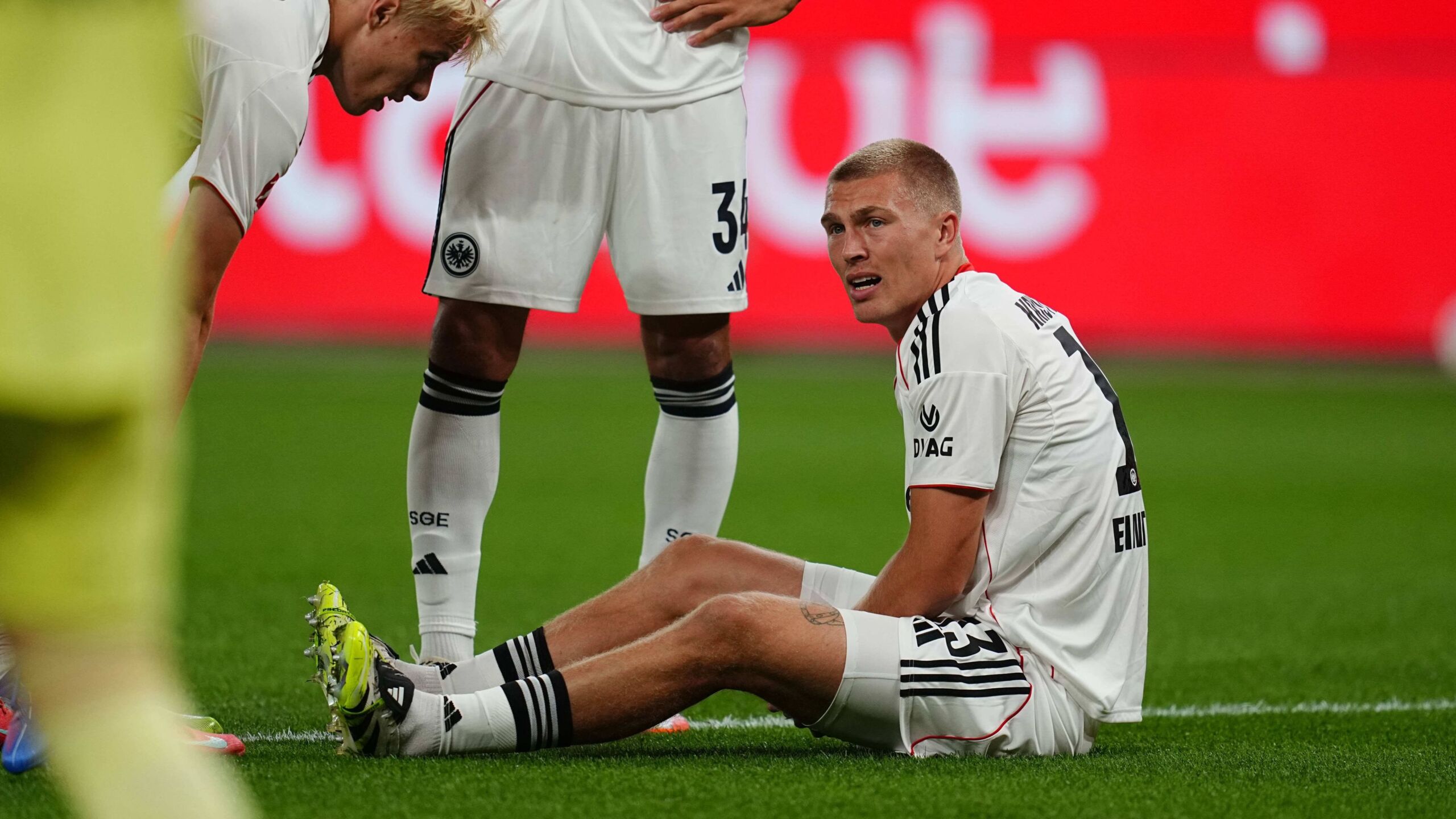 Nachdem der 28-jährige Außenverteidiger am Oberschenkel behandelt worden war, kam in der zehnten Minute Nathaniel Brown für ihn in die Partie. Dem 22-Jährigen, der in Leverkusen einen insgesamt blassen Auftritt hinlegte, winkt nun sein erster Einsatz in der Champions League, wenn die Frankfurter zum Auftakt am Donnerstag (21 Uhr) Galatasaray Istanbul empfangen.