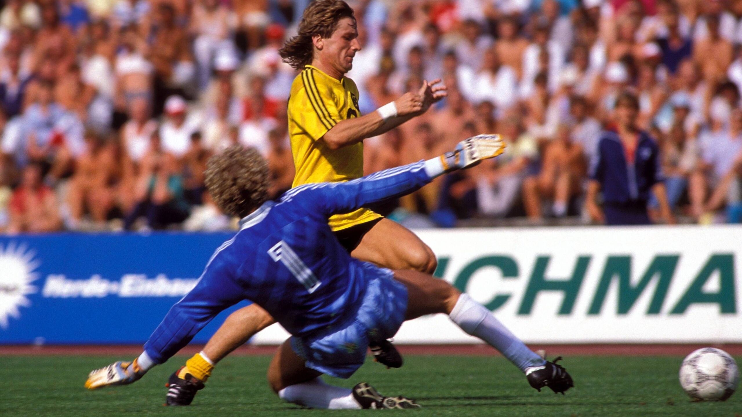 Der Rest ist bekannt: Mill trifft unbedrängt aus zwei Metern nur den rechten Pfosten. Und was dachte eigentlich Pfaff, der vom Stürmer vorgeführt werden sollte? „Mill hätte das Tor gemacht, wenn ich liegengeblieben wäre. Aber ich bleibe nur liegen, wenn ich schlafen will“, so der Belgier. Mill wird einige schlaflose Nächte nach dem Spiel gehabt haben, auch wenn er den Treffer zum 2:2 Endstand durch Michael Zorc noch vorbereitete.