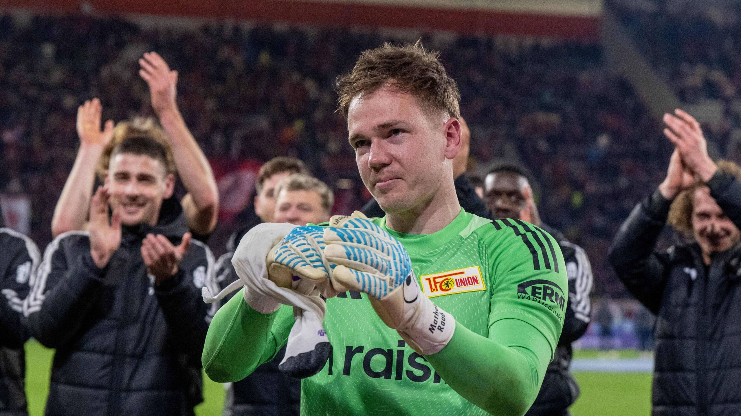 Und der Debütant musste sogar nochmal eingreifen. In der elften Minute der Nachspielzeit machte sich der 27-Jährige bei einem Distanzschuss von Niklas Beste lang, lenkte die Kugel stark um den Pfosten und hielt den so wichtigen Auswärtsdreier für Union Berlin fest. „Sieht schön aus, kam perfekt. Ich freue mich unheimlich über mein Bundesliga-Debüt“, sagte Raab sichtlich berührt und fügte an: „Die Mannschaft hat so ein gutes Spiel gemacht, nichts zugelassen. Sie haben es mir sehr leicht gemacht, ins Spiel zu kommen. Ich bin einfach nur unheimlich glücklich. Scheiß auf die Hand.“
