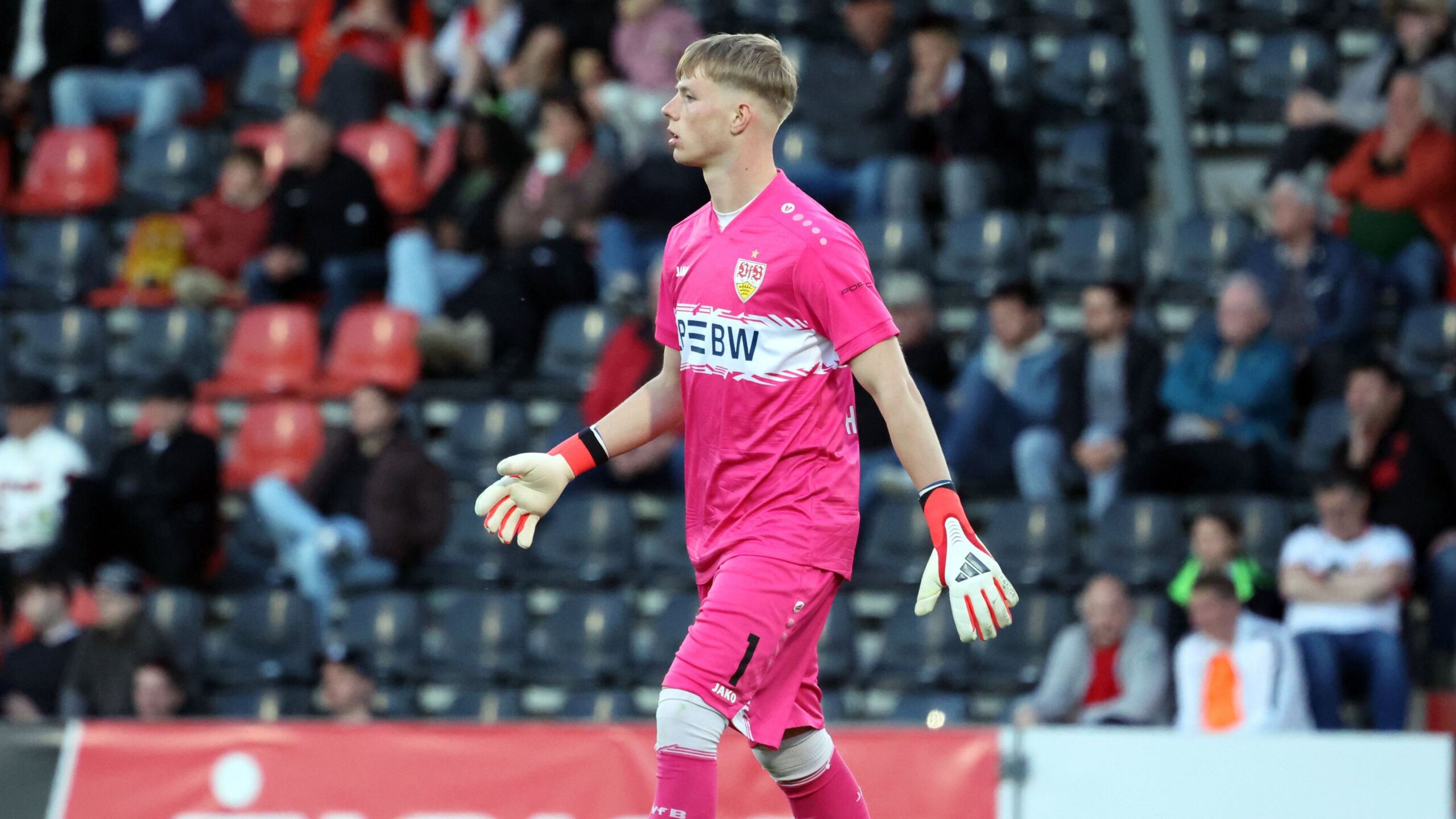 Seine Leistungen in der 3. Liga lassen zumindest aufhorchen, denn er kommt in 25 Spielen auf einen kicker-Notenschnitt von 2,62 – der derzeit viertbeste aller Drittliga-Spieler. Wie sieht also seine nahe Zukunft im Verein aus? Nübel wird nach aktuellem Stand nicht über den Sommer hinaus im VfB-Tor stehen. Seimen, wie Hellstern mit 20 Jahren ebenfalls noch jung und mit Vertrag bis 2029 ausgestattet, ist bis zum Sommer an den Zweitligisten SC Paderborn ausgeliehen und darf sich Hoffnungen machen, künftig die Nummer 1 bei den VfB-Profis zu werden. Das würde allerdings die Zukunft Hellsterns in Sebastian Hoeneß‘ Mannschaft erst mal blockieren.