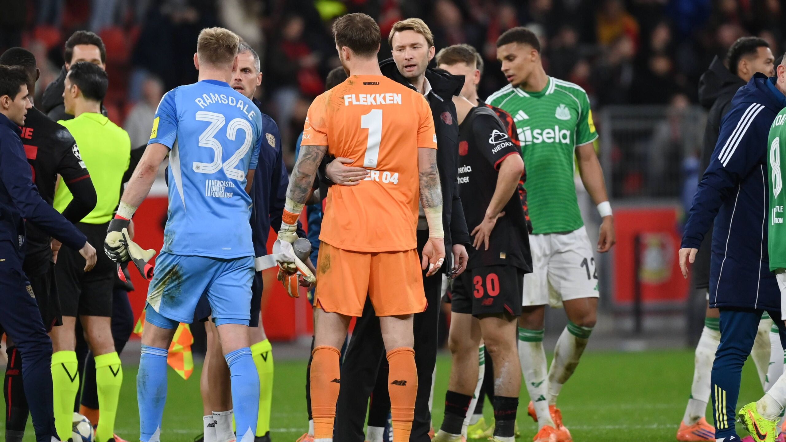 Der von Torhüter Mark Flekken überflüssig verursachte Strafstoß für die Gäste gehörte wie die vor der Pause nicht gegebene, aber wegen einer potenziellen Notbremse möglichen Rote Karte für Newcastles Malick Thiaw zu den Momenten, die Rolfes nicht über das 2:2 jubeln lassen wollten. „Ich glaube, da musst du Rot geben, weil eine klare Torchance verhindert wird. Das hätte uns in die Karten gespielt, das Momentum auf unsere Seite zu drücken“, sagte der 43-Jährige, der aber wusste, dass das Remis am Ende in Ordnung ging, „in der zweiten Halbzeit gab es Phasen, in denen Newcastle ein bisschen stärker war.“